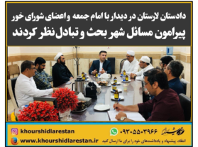 ▪️در ادامه سید محمدنور دانش امام جمعه خور، دکتر سید احمد هاشمی و اعضای شورای شهر، هر کدام به نوبه خود ضمن خیرمقدم و تشکر از زحمات مجموعه دادگستری لارستان در بوجود آوردن امنیت و آرامش منطقه، مشکلات شهر را با ایشان در میان گذاشته و ضمن مشورت از دادستان محترم ارشادات لازم را دریافت کردند.