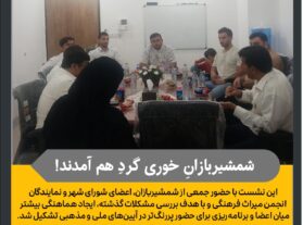 ▪همچنین برگزاری کلاسهای آموزشی شمشیربازی نیز به تصویب حاضران رسید تا این میراث فرهنگی ارزشمند حفظ شده و به نسلهای آینده منتقل شود.