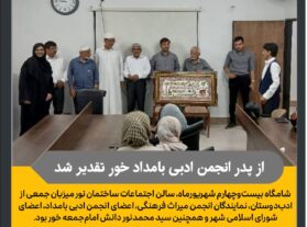 ◾ خورشید لارستان: شامگاه بیستوچهارم شهریورماه، سالن اجتماعات ساختمان نور میزبان جمعی از ادبدوستان، نمایندگان انجمن میراث فرهنگی، اعضای انجمن ادبی بامداد، اعضای شورای اسلامی شهر و همچنین سید محمدنور دانش امامجمعه خور بود، که حضور مستمر ایشان در جلسات فرهنگی همواره مسبب ذوق و انگیزه دوچندان اهالی فرهنگ است.