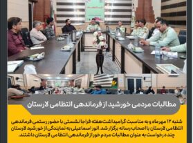 ▪انور اسماعیلی به نمایندگی از خورشید لارستان چند درخواست به عنوان مطالبات مردم خور از فرماندهی انتظامی لارستان داشتند. از جمله همکاری نیروی انتظامی با مجموعه مدیریت شهری در مورد مسائل مختلفی که بدون حضور مجموعه آنها نمیتواند اثرگذار باشد.